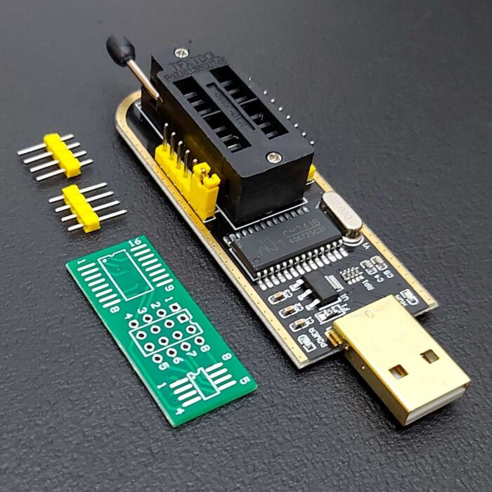 O CH341A é um programador USB utilizado para ler, apagar e gravar chips de memória BIOS, muito comuns em placas-mãe, roteadores, TVs box e também em placas de vídeo.