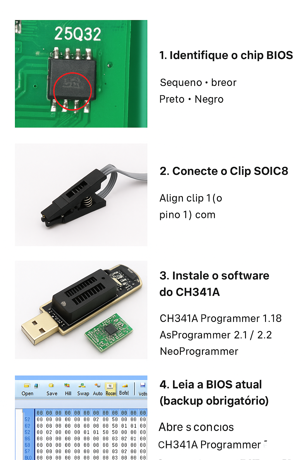 Uma das soluções mais eficientes para identificar e corrigir esse problema é utilizar o programador CH341A, um dispositivo barato e simples capaz de ler e reescrever BIOS em chips do tipo SPI EEPROM.